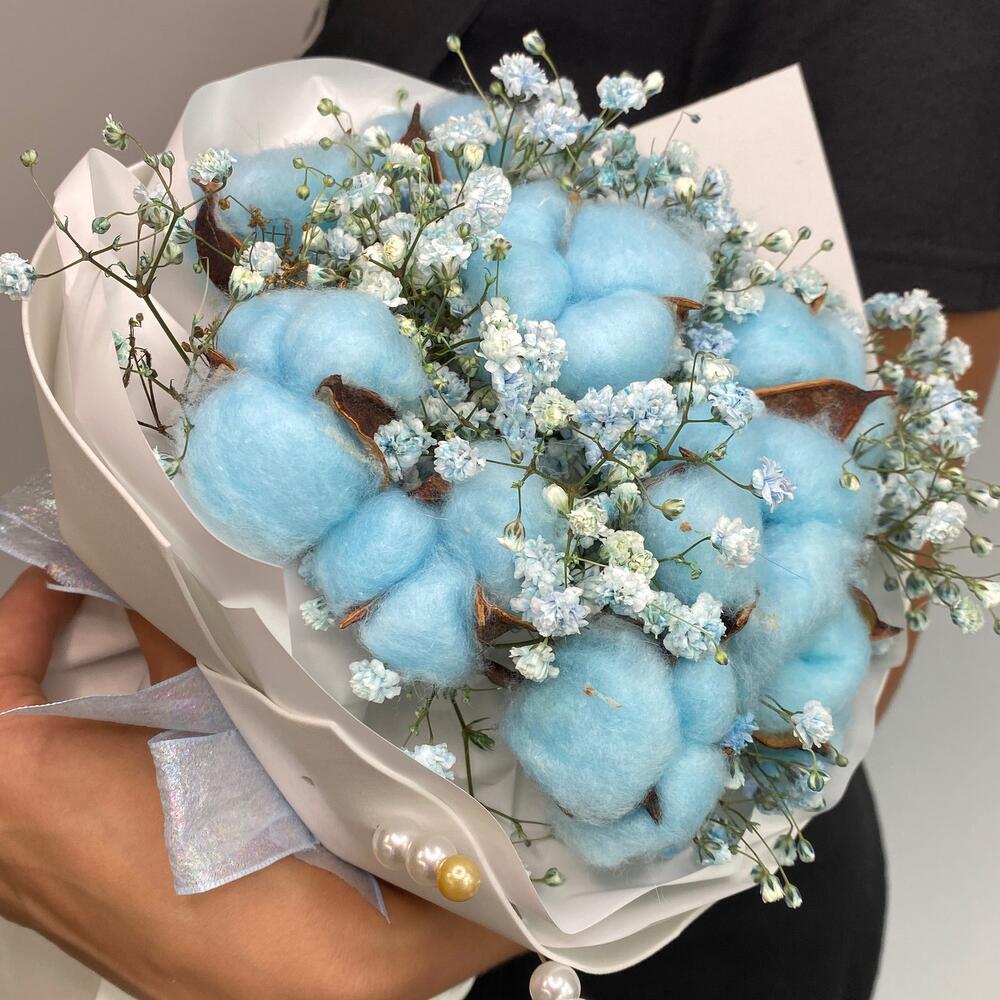 Гипсофила – 2 шт.Хлопок – 9 шт.Упаковка – 3 шт.