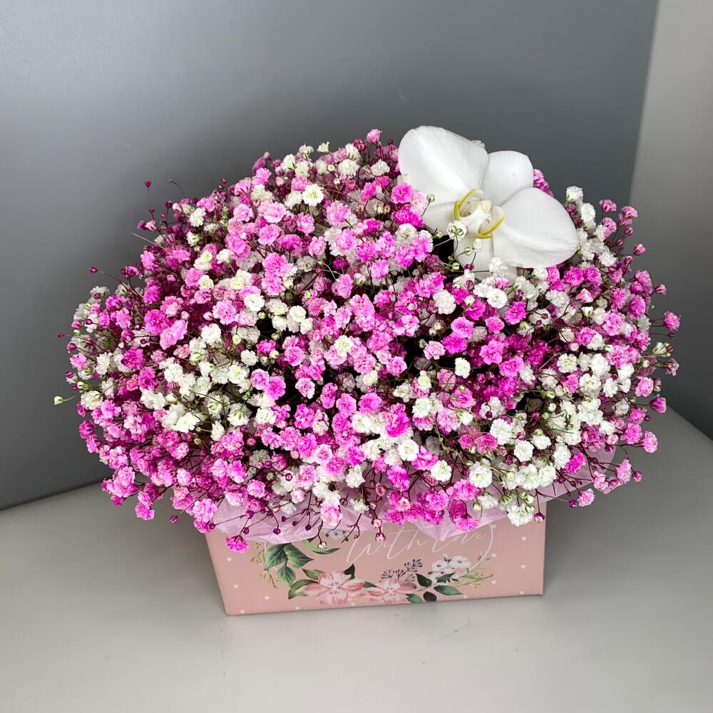 Нежная Гипсофила и орхидея в коробке