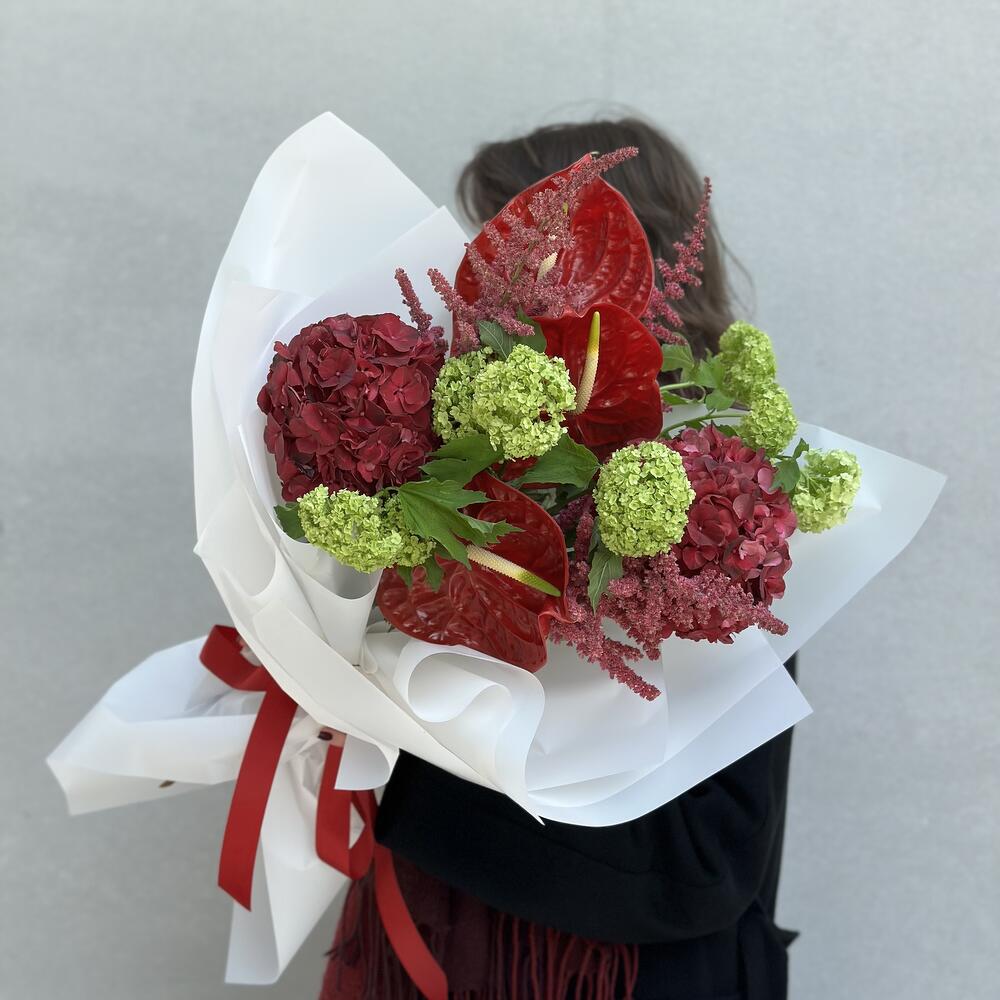 Гвоздики, Гортензии, Лизиантусы, Пионовидные розы, Розы