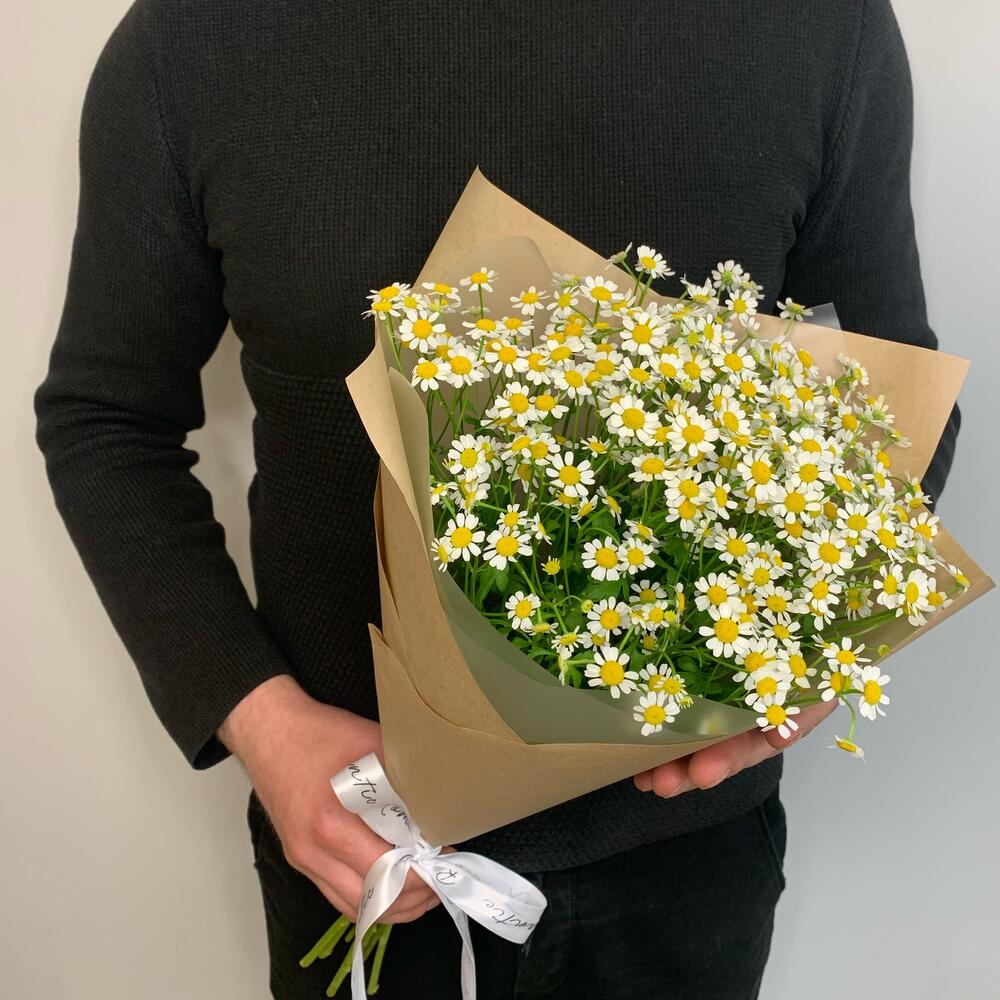 Танацетум – 7 шт.Лента атласная – 1 шт.Крафт – 1 шт.