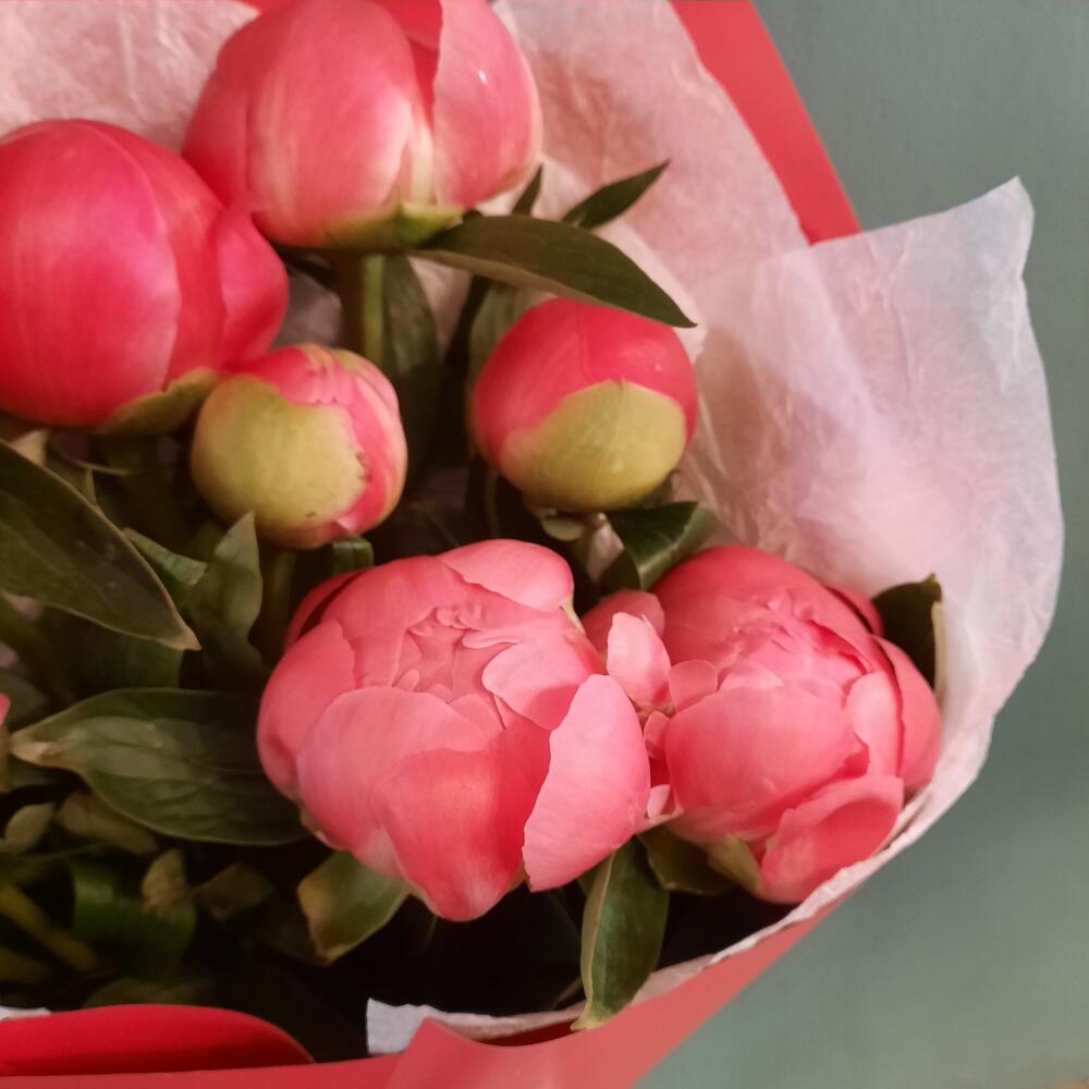9 коралловых пионов