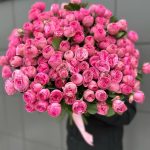 Букет состоит из 35 веток кустовой розы сорта Жизель . Количество роз(бутонов) в букете может достигать 241 штуки .