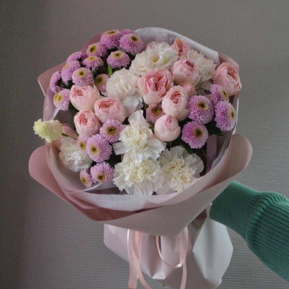 Гвоздики, Кустовые розы, Лизиантусы, Пионовидные розы, Розы