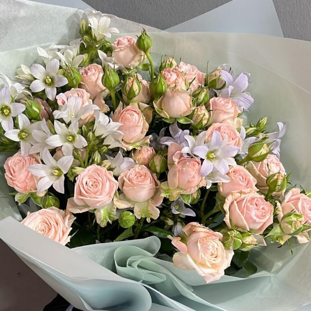 Гвоздики, Кустовые розы, Пионовидные розы, Розы