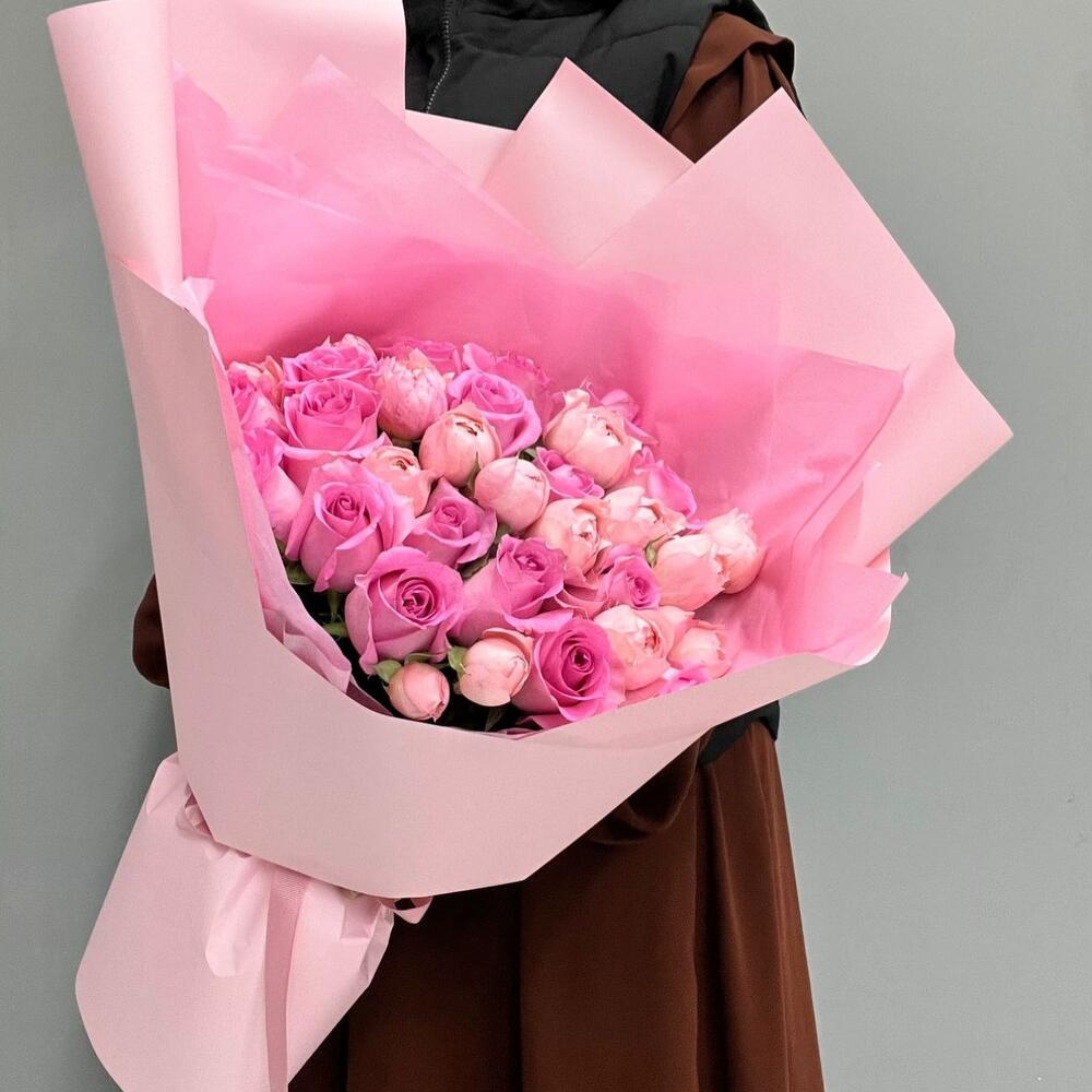 Гвоздики, Кустовые розы, Пионовидные розы, Розы