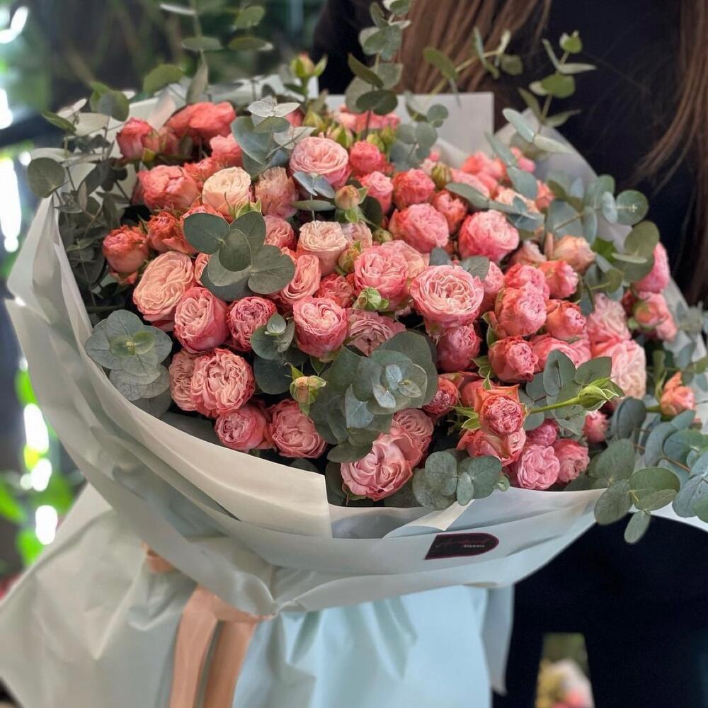 Гвоздики, Кустовые розы, Лизиантусы, Пионовидные розы, Розы