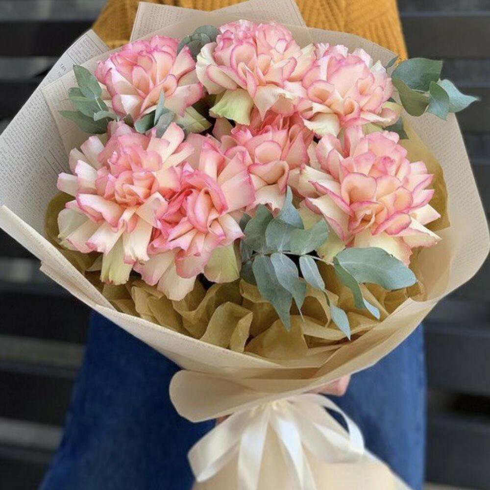 Гвоздики, Кустовые розы, Лизиантусы, Пионовидные розы, Розы